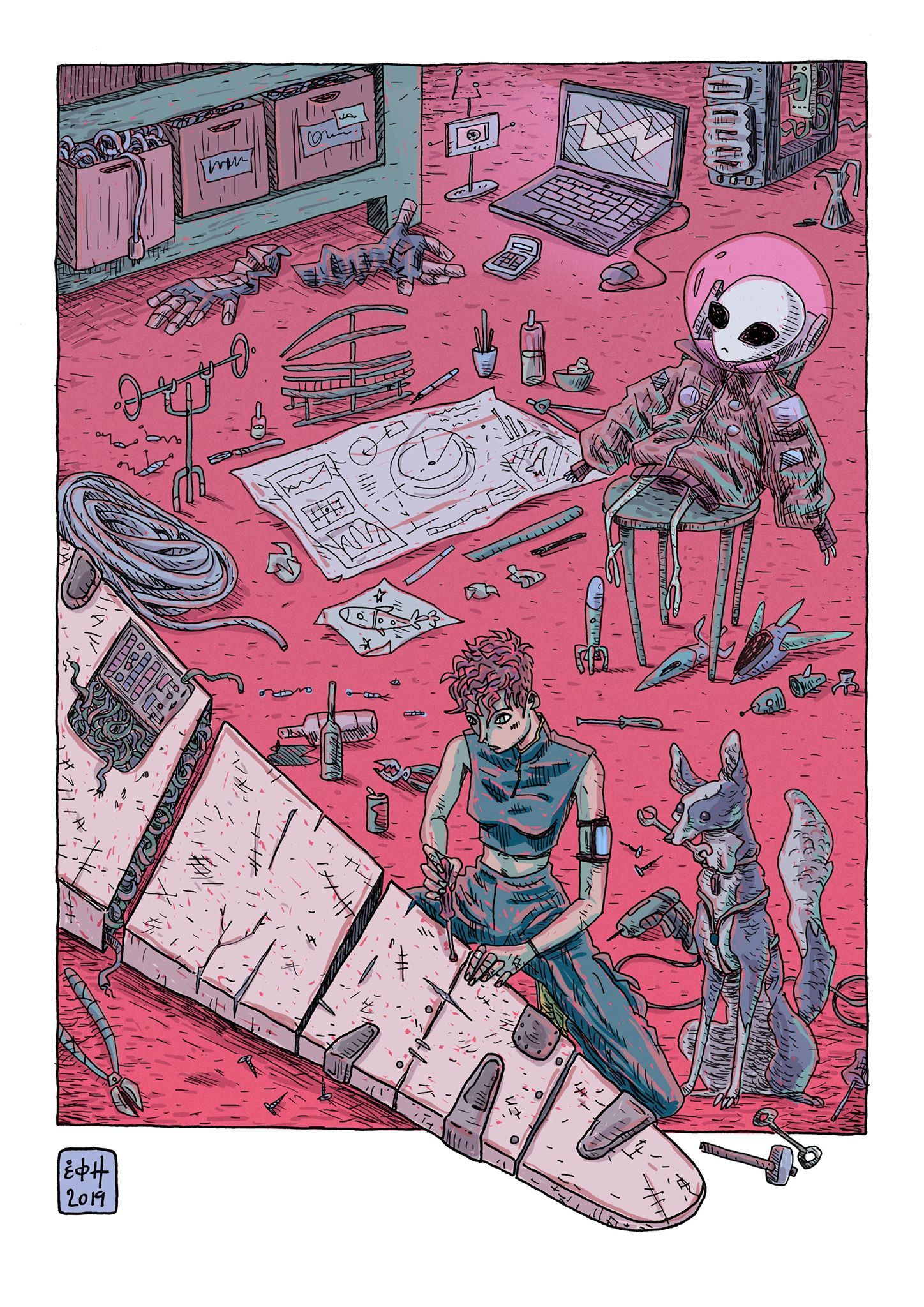 H Έφη σχεδιάζει κόμικ, κάνει εικονογραφήσεις και τοιχογραφίες. Την γνωρίσαμε όταν σπούδαζε φιλολογία στα Γιάννενα. Για την ώρα ζει και εργάζεται στην Θεσσαλονίκη. Απαντάει τις 20 ερωτήσεις του Speakloud εμπνευσμένες από το ερωτηματολόγιο του Proust και μας παρουσιάζει τη δουλειά της…